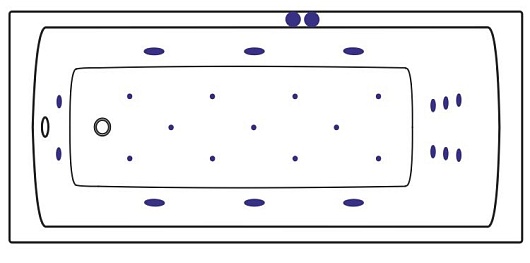 - аэромассажная система (10-12 форсунок AERO-JET) с функцией регулировки интенсивности массажа