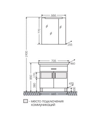 - две распашные дверцы, ящик