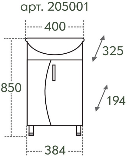 Тумба с раковиной «Эколайн 40» - арт. 205001Размеры ШxГxВ: 400x325x850 мм.