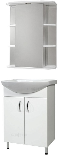 Описание: влагостойкая зеркальная распашная дверца, полочки, встроенный светильник, выключатель, розетка.