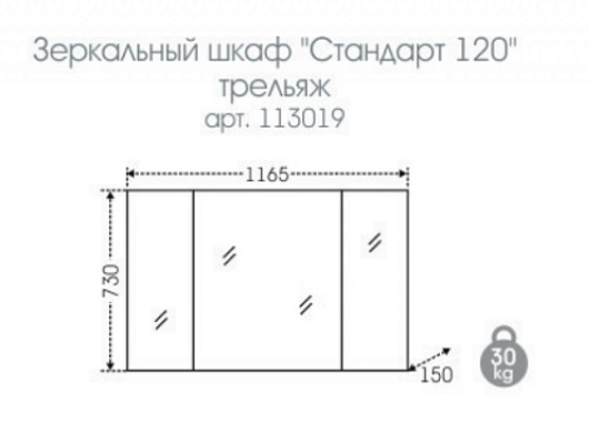Зеркальный шкаф Стандарт 120 трельяж белый