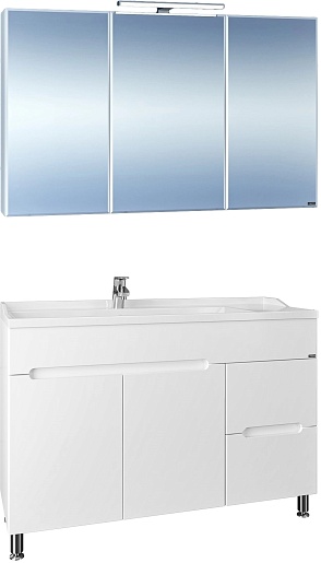 В комплекте: тумба, раковина, зеркальный шкаф, ножка (4 шт.), комплект креплений.