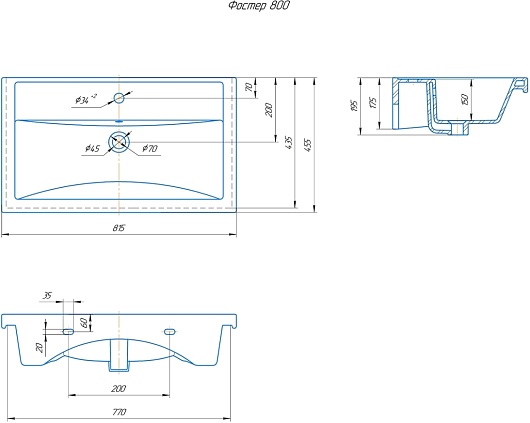 Мебельная раковина Фостер 80
