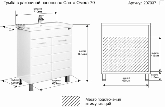 СанТа Мебель для ванной Омега 70 напольная