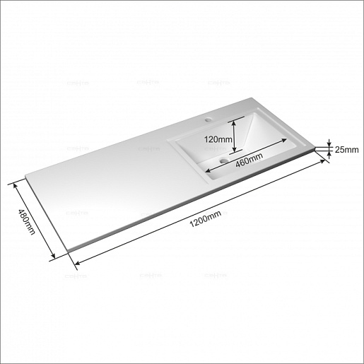- арт. 900104, раковина Лидер 1200 из литьевого мрамора, чаша слева, крыло-столешница справа
