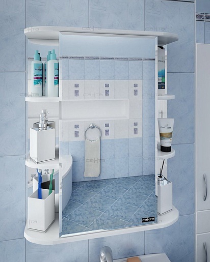 Описание: влагостойкая зеркальная распашная дверца (ориентация правая), полочки.