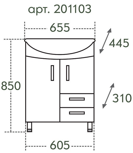 СанТа Тумба с раковиной Элеганс 65 с ящиками