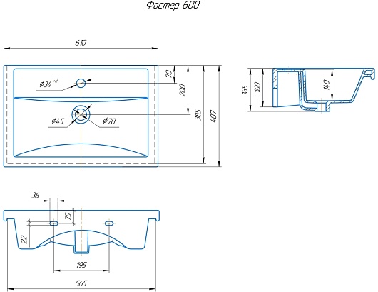 Подвесная тумба с раковиной Санта Лондон 60 белая - арт. 224035 / Фостер60 .