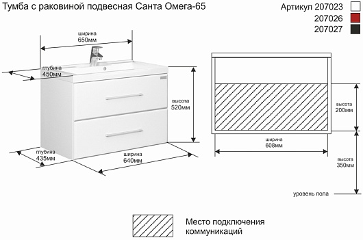 СанТа Тумба с раковиной Омега 65 подвесная