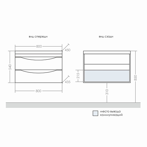 - Тумба для умыв. "Сатурн 80" 2 ящика, подвесная