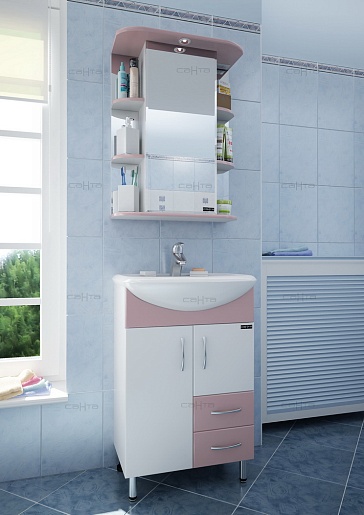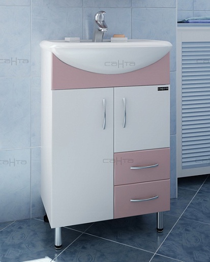 СанТа Тумба с раковиной Уют 55 с ящиками, роза