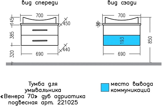 СанТа Тумба с раковиной Венера 70 дуб адриатика