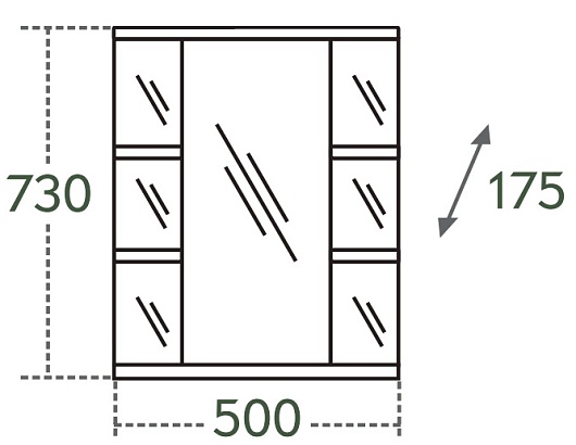 Описание: влагостойкая, зеркальная, распашная дверца (петли справа), полочки.