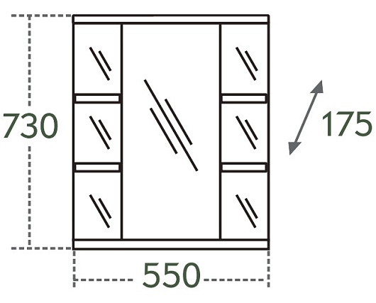 Описание: влагостойкая, зеркальная, распашная дверца (петли справа), полочки.