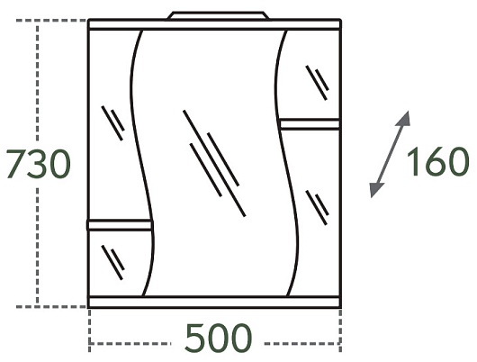 Описание: влагостойкая зеркальная распашная дверца, полочки.