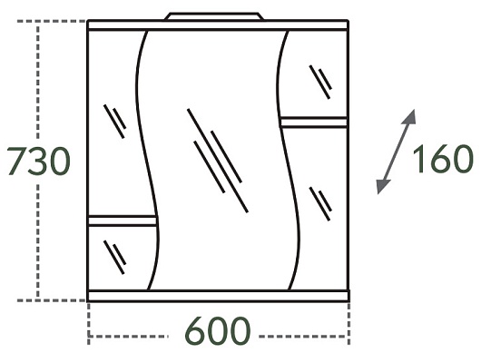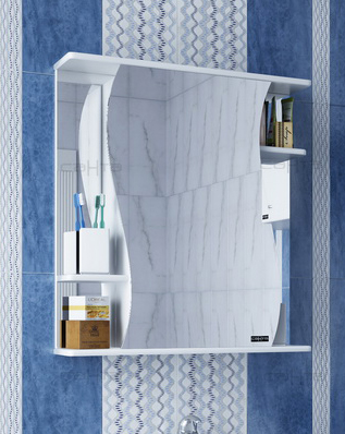 Описание: влагостойкая зеркальная распашная дверца, полочки.