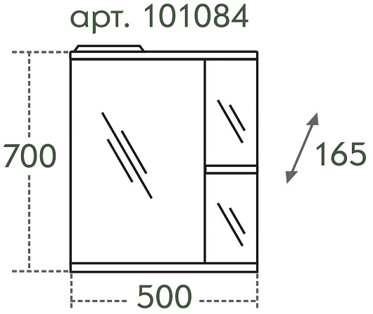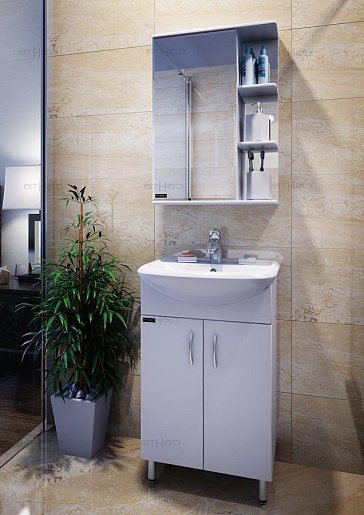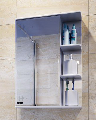 Описание: влагостойкая зеркальная распашная дверца, полочки.