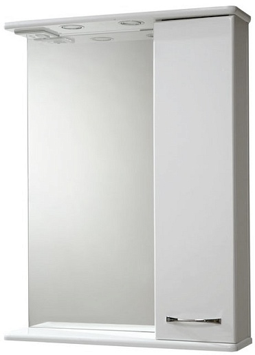 Описание: влагостойкая зеркальная распашная дверца, полочки, встроенный светильник, выключатель, розетка.