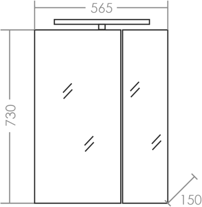 - Габариты со светильником (ШхГхВ): 565x155x775 мм.