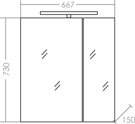 - Габариты со светильником (ШхГхВ): 667x155x775 мм.