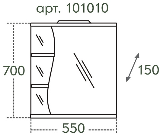 Описание: влагостойкая зеркальная распашная дверца, полочки. Габаритная ширина двери увеличивается при открывании на 2,5 см.