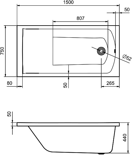 Акриловая ванна Фиджи 150x75 - арт. 1.WH50.1.598.