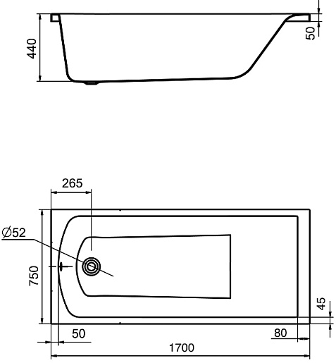Акриловая ванна Фиджи 170x75 - арт. 1.WH50.1.596.