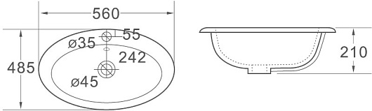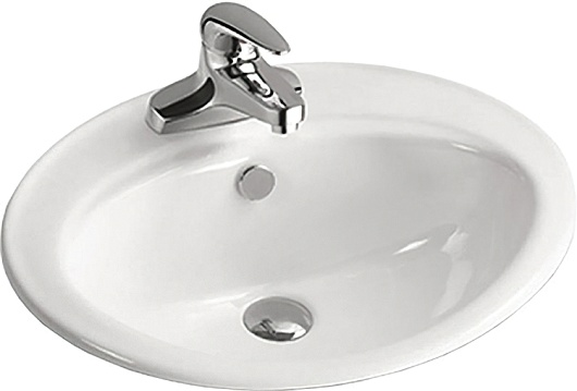 - Монтаж: полувстраиваемая в столешницу или на тумбу (врезная сверху).
