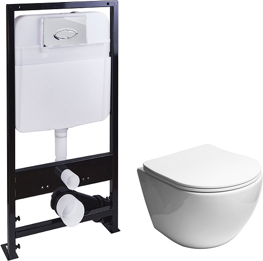 Комплектация: унитаз, крышка-сиденье, инсталляция, крепеж.
