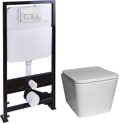 Комплектация: унитаз, крышка-сиденье, инсталляция, крепеж.