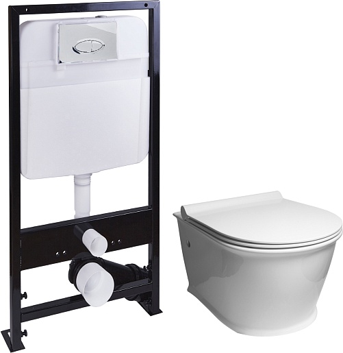 Комплектация: унитаз, крышка-сиденье, инсталляция, крепеж.