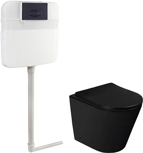 SantiLine Унитаз приставной SL-5020MB со смывным бачком SL-05 и черной клавишей смыва