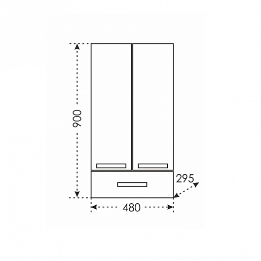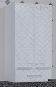 Комплектация: Навесной шкаф для ванной с двумя распашными дверцами и ящиком.
