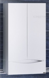 Комплектация: Навесной шкаф для ванной с двумя распашными дверцами и ящиком.