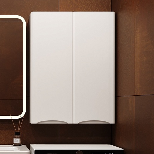 - Подвесной шкаф для ванной с распашными дверцами и внутренними полками.