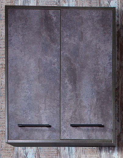 Описание: Подвесной шкаф для ванной с распашными дверцами и внутренними полками. Длинные металлические ручки.