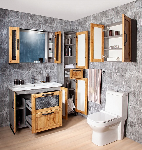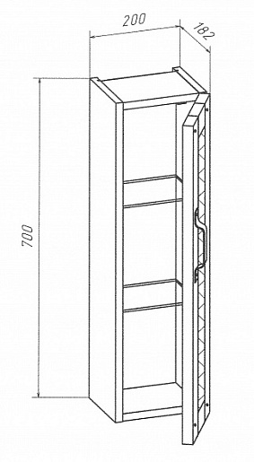 Описание: подвесной шкаф с распашной дверцей и вкладной полкой. Корпус ЛДСП, фасад МДФ, фурнитура черная матовая. Крепления в комплекте.