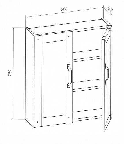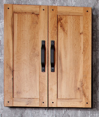 Описание: подвесной шкаф с двумя распашными дверцами и вкладной полкой. Корпус ЛДСП, фасад МДФ, фурнитура черная матовая. Крепления в комплекте.