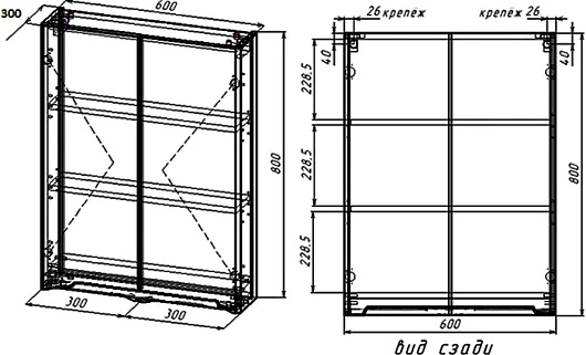 - 2 распашные дверцы.