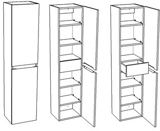 - 2 распашные дверцы, 1 выдвижной ящик.