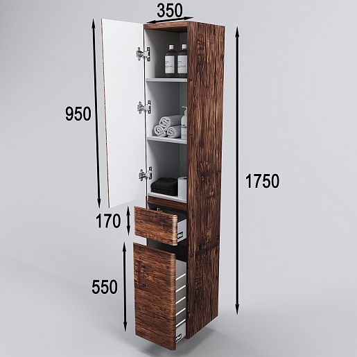 Style Line Шкаф пенал Атлантика 35 L Люкс Plus с б/к старое дерево