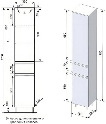 Шкаф пенал Style Line Атлантика 35 Люкс Plus - арт. СС-00002222.