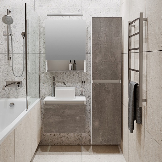 Runo Шкаф пенал Бари 35 R подвесной железный камень/белый