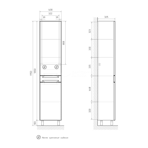 - Пенал устанавливается на 4 ножки и фиксируется к стене при помощи креплений.