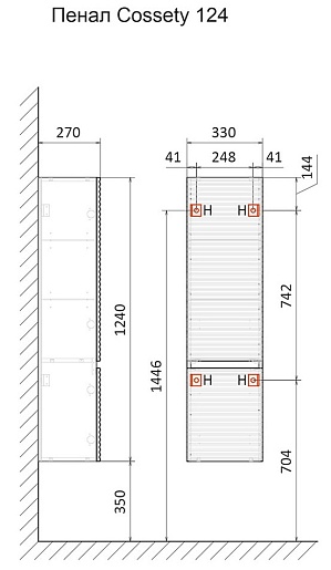 - Размеры (ШхВхГ): 330х1240х270 мм.