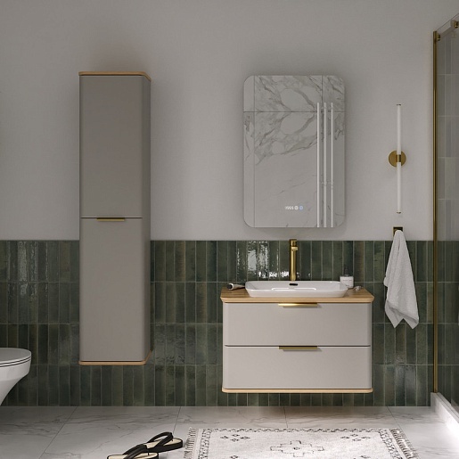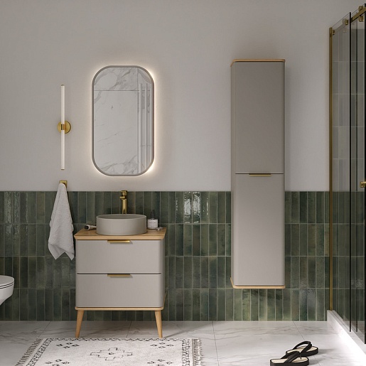 - Дверца пенала открывается при помощи металлической ручки под золото.