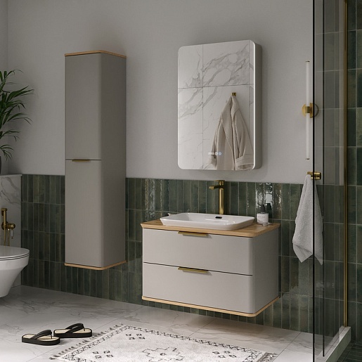 - Фасад и корпус пенала выполнены из МДФ и облицованы матовой пленкой ПВХ с эффектом "Soft Touch" в цвете Амарок.
