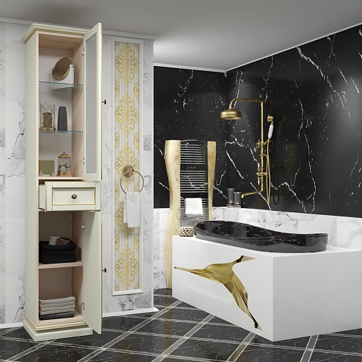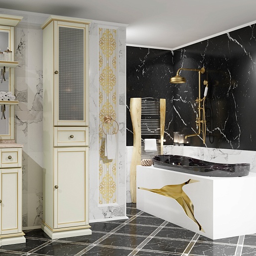 Opadiris Шкаф-пенал для ванной Корсо-оро №11 R слоновая кость с золотой патиной