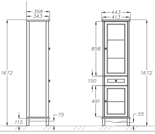 Opadiris Шкаф-пенал для ванной Омега 45 R белый матовый