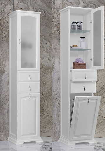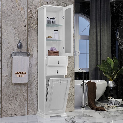 Opadiris Шкаф-пенал для ванной Риспекто 40 R белый, с бельевой корзиной
